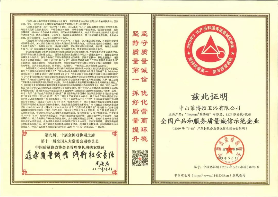 全國產(chǎn)品和服務(wù)質(zhì)量誠信示范企業(yè)