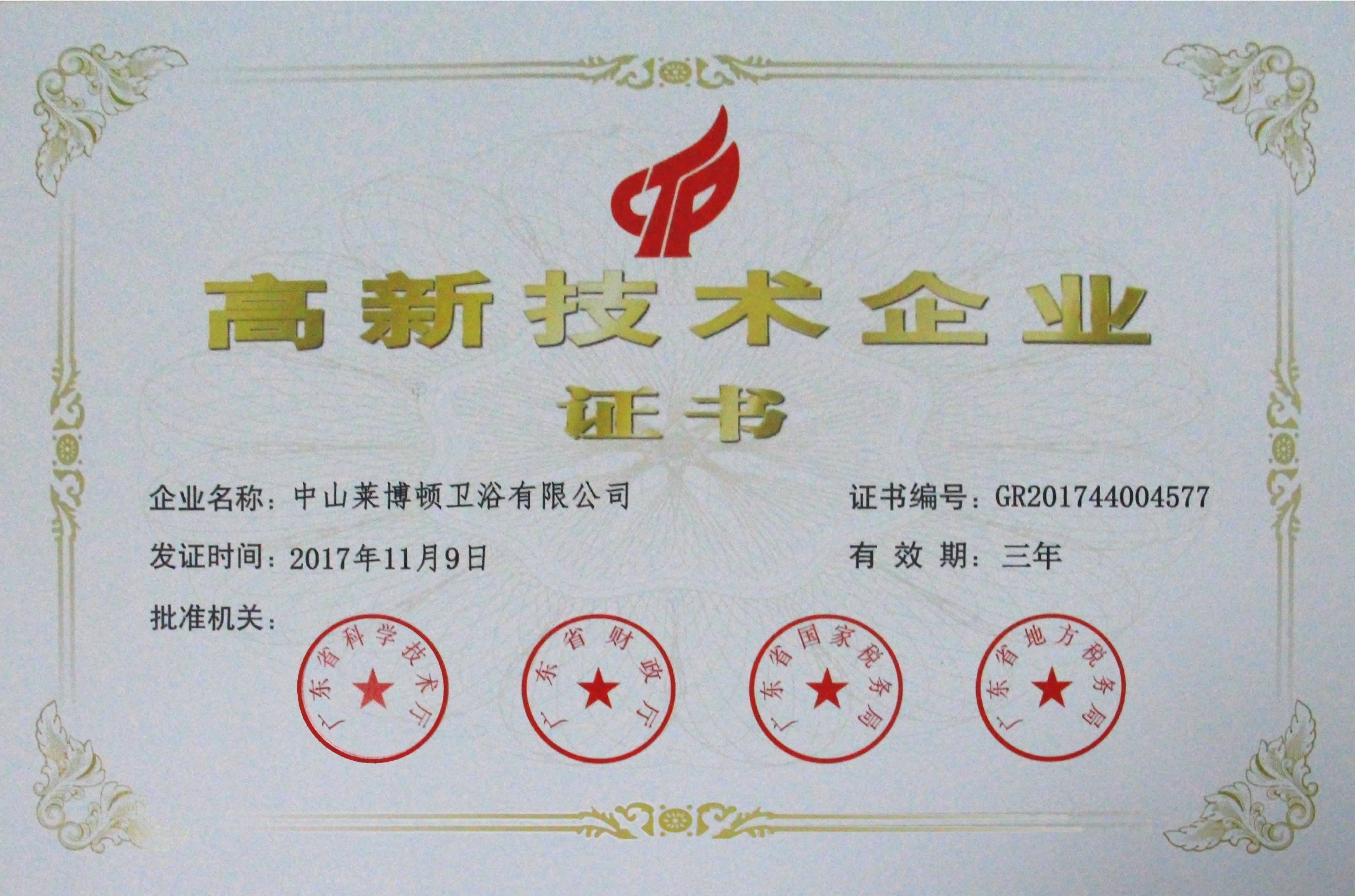 近日,萊博頓淋浴房榮獲由廣東省科學(xué)技術(shù)廳、廣東省財(cái)政廳、廣東省國(guó)家稅務(wù)局和廣東省地方稅務(wù)局聯(lián)合頒發(fā)的《高新技術(shù)企業(yè)證書(shū)》。高新技術(shù)企業(yè)是在國(guó)家重點(diǎn)支持的高新技術(shù)領(lǐng)域內(nèi),持續(xù)進(jìn)行研究開(kāi)發(fā)與技術(shù)成果轉(zhuǎn)化,形成企業(yè)核心自主知識(shí)產(chǎn)權(quán),并以此為基礎(chǔ)開(kāi)展生產(chǎn)經(jīng)營(yíng)活動(dòng)的企業(yè)。