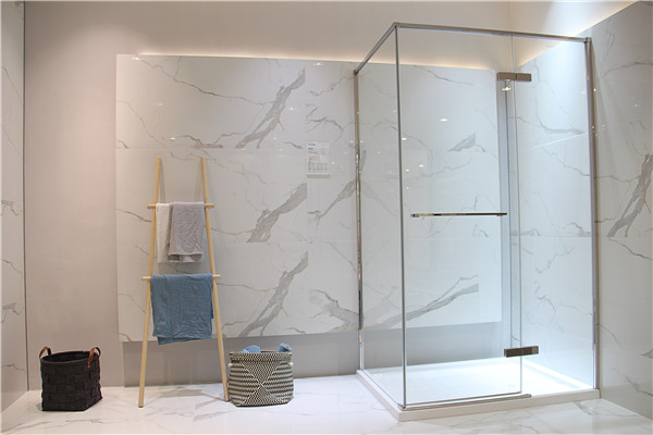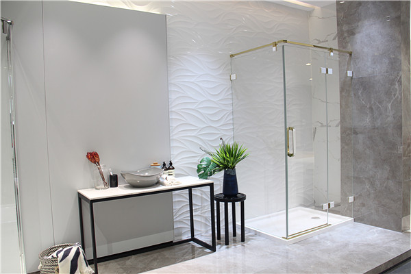 白色石紋板磚上,簡單的擺設(shè)營造出現(xiàn)代流行的簡約家裝的環(huán)境氛圍。灑落的燈光下把淋浴房晶瑩剔透的特性完美表達(dá)出來。